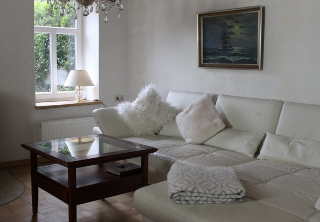 Im Erdgeschoß befindet sich hochwertiges Massivholzparkett, im Obergeschoß Landhausdielen. In fast allen Räumen finden Sie ausgesuchte Antiquitäten und echte Gemälde. Selbstverständlich steht Ihnen auch ein Hauswirtschaftsraum mit Waschmaschine und Trockner zur Verfügung. Und in unserer Gartensauna können Sie dem Alltagsstress entfliehen.